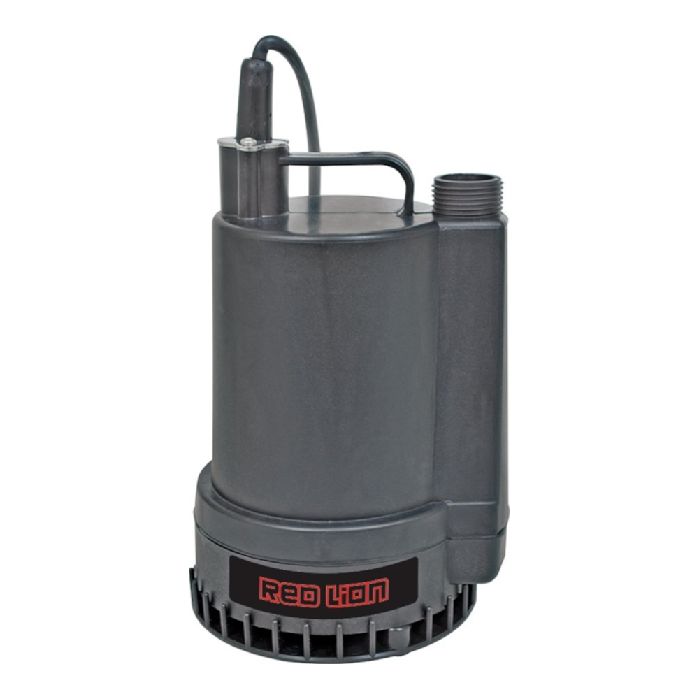 The Red Lion RL-MP16 Submersible Utility Pump is a manual, 1-phase utility pump designed for general dewatering applications. It features a reinforced thermoplastic construction that won’t rust or corrode, and a screened bottom intake that removes water down to within 3/16″ of the surface. With a 1″ outlet, it delivers up to 1300 GPH and provides a maximum head of 26 ft. Motor rating is 0.166 HP.