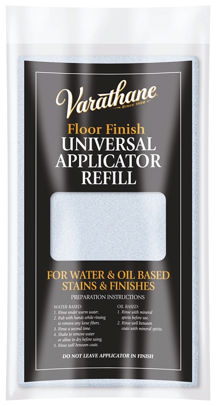 Varathane® brushes are either polyester for water based finishes or natural boar hair for oil based finishes. Protect your investment, clean brushes after use for years of enjoyment. Varathane®’s new universal applicator and refill may be used with both water based and oil based finishes. They are safe to use with all finishes and can be reused if rinsed out between coats. Applicator pads are recommended for use with polyurethane finishes as they assist with the even spread of the coating, resulting in a lower amount of air bubbles and more control during use.