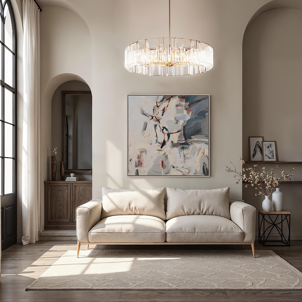 Experience Sagea, a hand-painted canvas featuring calming, textured layers and soothing tones that elevate any room. Its soft matte finish and medium walnut floating frame bring modern warmth and subtle sophistication, making it an elegant addition to any home or office.
