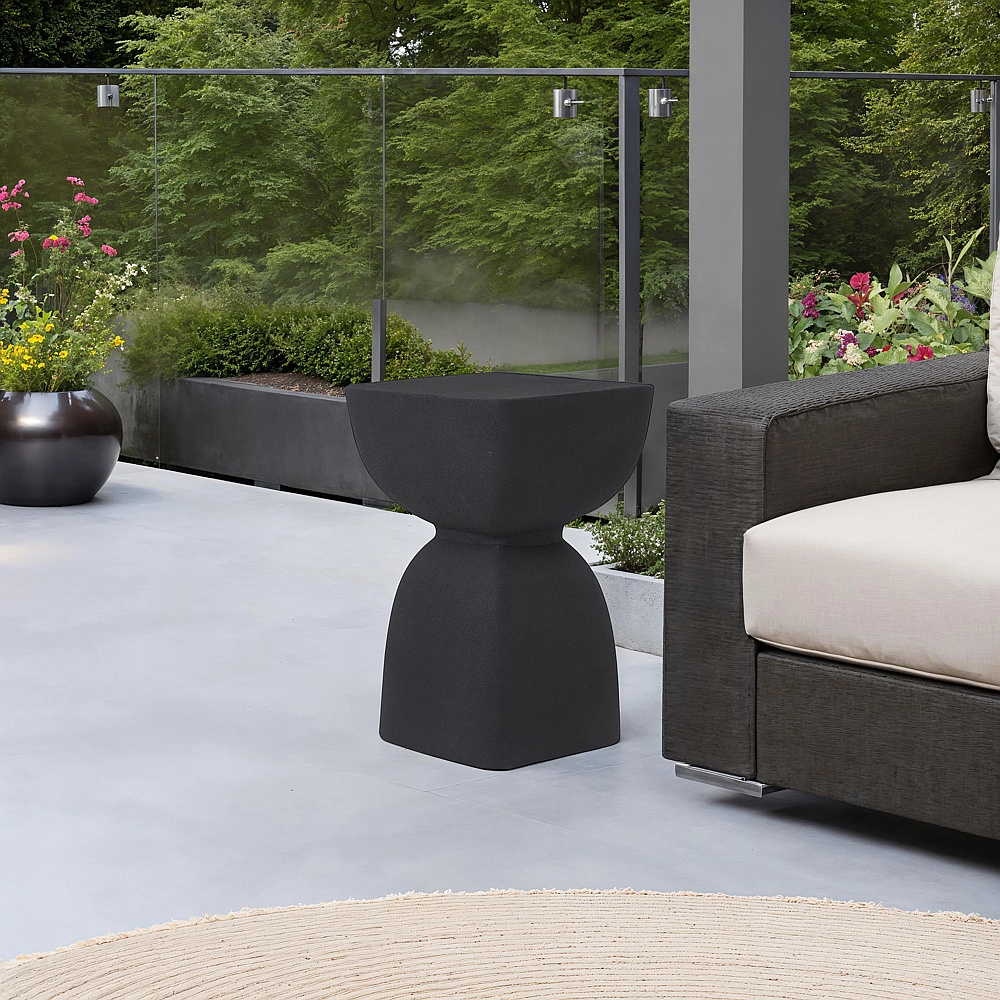 The perfect complement to modern exteriors, this stylishly simple end table will instantly update any outdoor space. Whether on a deck, balcony or poolside, fashion meets function in this matte black-finished aluminum outdoor side table. Make an impression of your great taste by including one in your plans, and if space allows, try several for maximum impact.