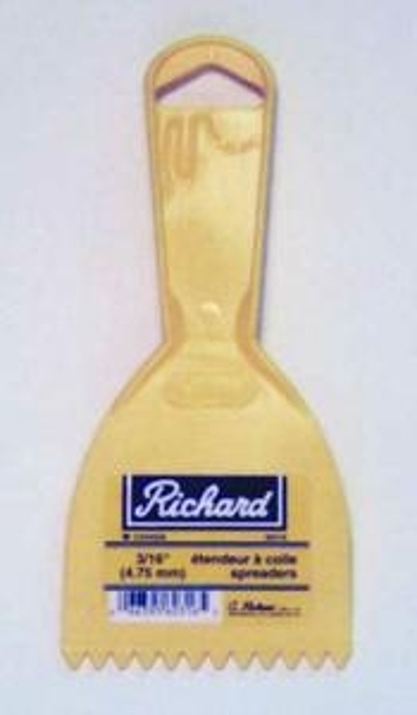 Richard Hand Spreader, Notched Blade, Polystyrene Blade, 3 in W Blade, Polystyrene Handle, Notch Shape: Saw, Notch Size: 1/4 x 1/4 in