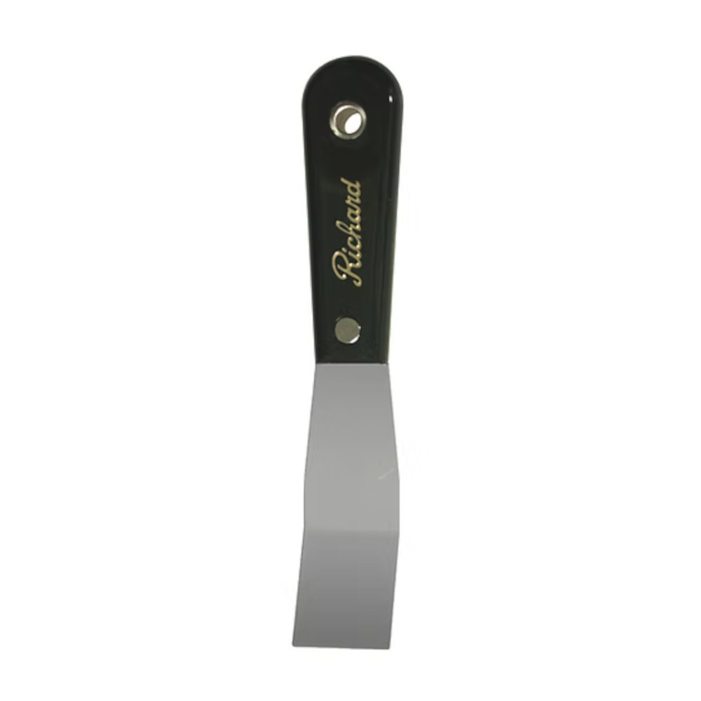 Richard Chisel Edge Putty Knife, 1-1/4 in W Blade, HCS Blade, Lacquered/Mirror Polished Blade, Polypropylene Handle, Handle Color: Black, 7-1/2 in OAL