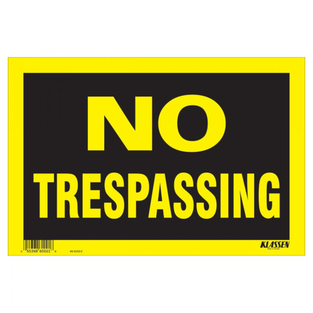 Richelieu 1171585 12" x 8" "NO TRESPASSING" Sign – Black & Yellow