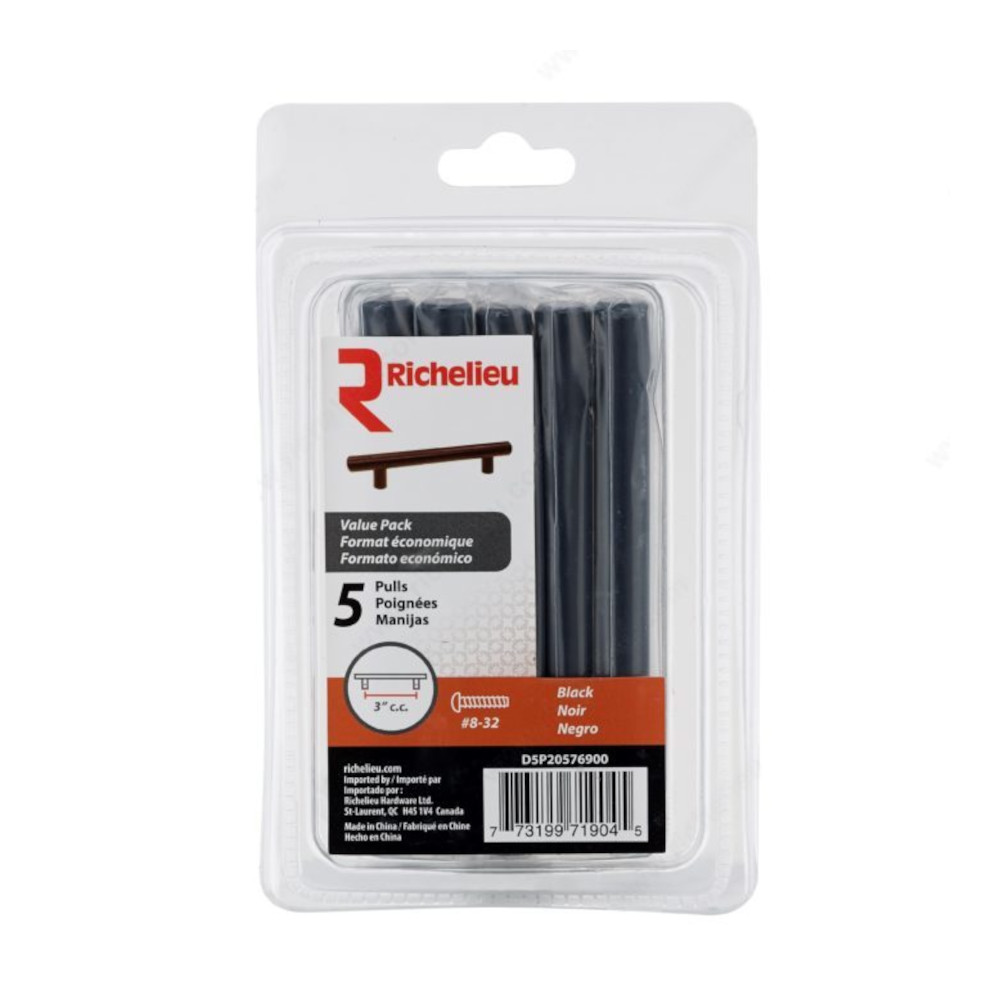 Richelieu D5P20576900 3" Contemporary Steel Pulls, 5 Pack – Black
