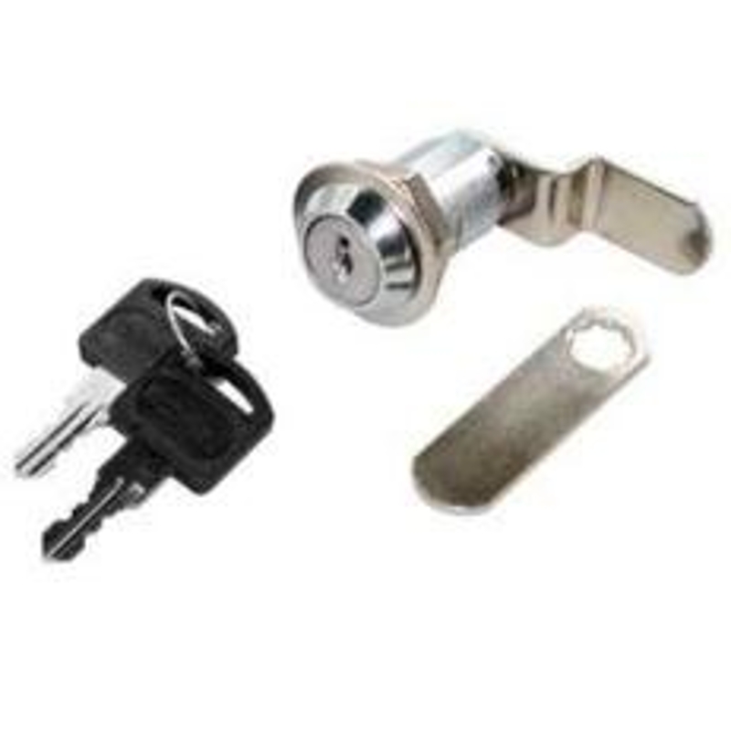 Richelieu Drawer Lock, Lock Type: Cam, Key Type: Keyed Different, Number of Keys: 2, Zinc, Chrome, Includes: (1) Straight Cam, (1) Angled Cam