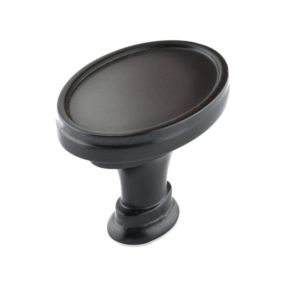 This transitional oval-shaped knob by Richelieu will liven up the look of your furniture and cabinets. The border detail makes for a subtle design that will complement any style.
