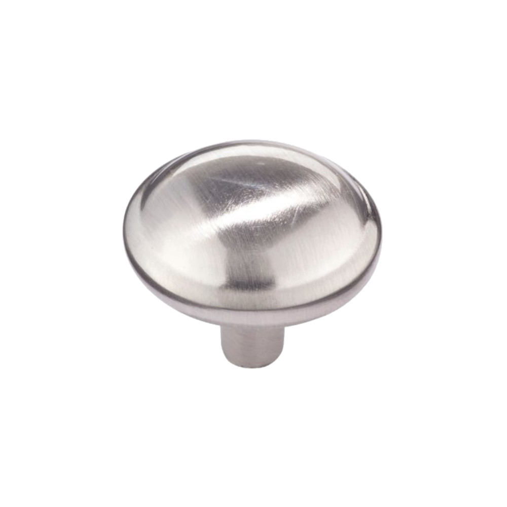 Classic round knob by Richelieu. knob features a slightly domed face with relief border on a straight post. This discreet knob works well in any kitchen or bathroom decor.