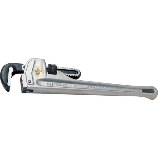 The RIDGID Aluminium Straight Pipe Wrench has the same strength and durability as other RIDGID heavy-duty wrenches but are made from lightweight aluminium. These are nearly 40% lighter than the cast-iron wrench of the same size. The jaws are identical to the RIDGID heavy-duty wrenches.