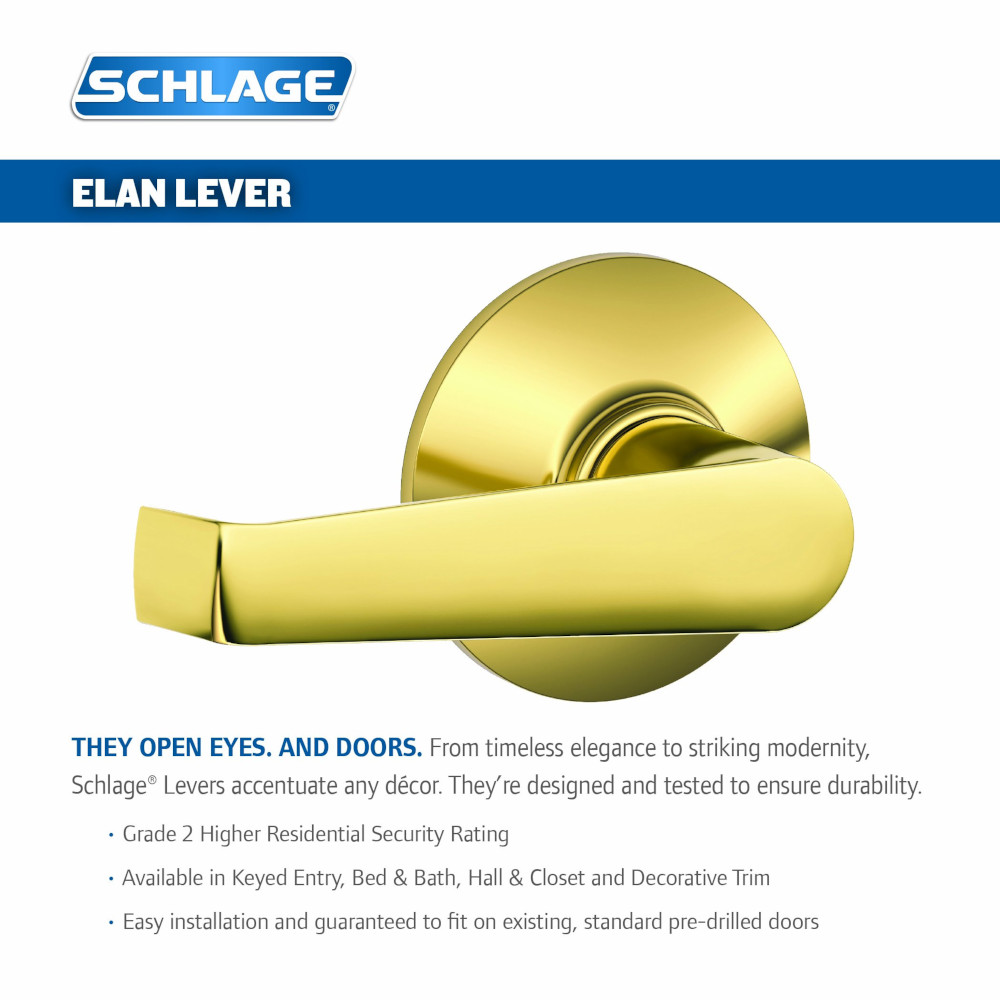 Perfect for use on interior hall and closet doors or paired with a deadbolt on exterior doors, this door handle is a non-locking, passage function. This product is backed by over a century of dedication to durability, strength and craftsmanship from Schlage. Built with premium materials and certified to the highest industry standards, this door handle is the finishing touch that makes your house a home. Trust your home to Schlage.