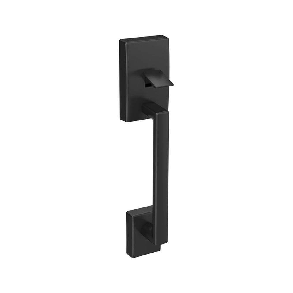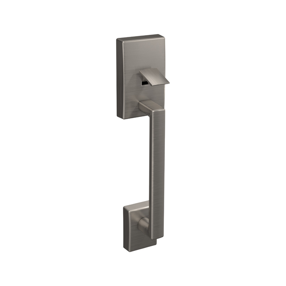 Add elegance to your front door thanks to the satin nickel finish of this Schlage “Century” collection entrance handleset. Made of steel, it can fit doors with a thickness that ranges from 1 5/8″ to 1 3/4″ (4.13 to 4.45 cm). It comes with an adjustable throughbolt of 1 1/2″ (3.81 cm) that enables the gripset to fit most doors so you don’t have to redrill a hole. Match your gripset to any deadbolt. This product is backed by a limited lifetime warranty.