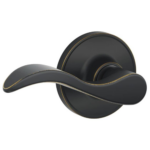 The Schlage Seville Passage Lever in Aged Bronze is perfect for use on doors where locking is not needed. This lever is widely popular for its elegant wave-like design that effortlessly matches a room’s style without overshadowing it. Our Aged Bronze finish is inspired by traditional design, featuring warm, copper tones that break through its darker, aged exterior. Plus, it’s been designed and tested with strength and durability in mind.