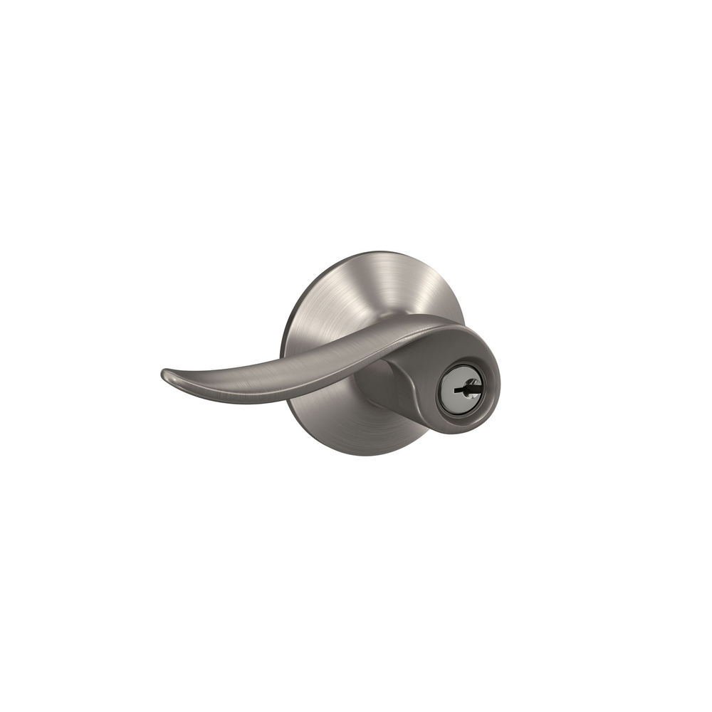 Perfect for entry and side doors or anywhere where keyed security is needed, this door handle locks/unlocks from the exterior with a key while the interior locks with a turn-button and unlocks when the door handle is rotated for a convenient, quick exit. This keyed door handle is backed by over a century of dedication to durability, strength and craftsmanship from Schlage. Built with premium materials and certified to the highest industry standards, this keyed door handle is the finishing touch that makes your house a home. Trust your home to Schlage.
