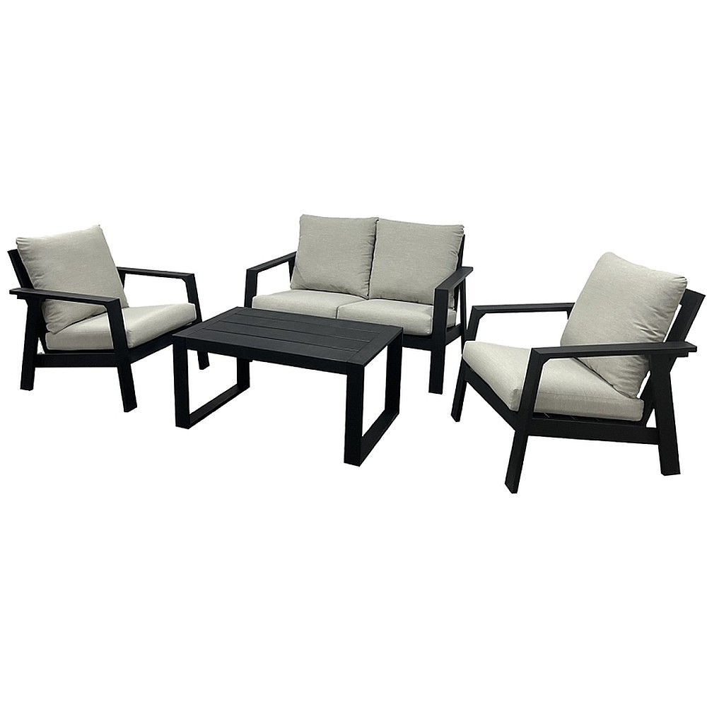 Seasonal Trends SH23S1243E Coastal Deep Seating Set, Cushion/Resin Wood/Steel, Black Charcoal, Resin Wood, 4 -Piece