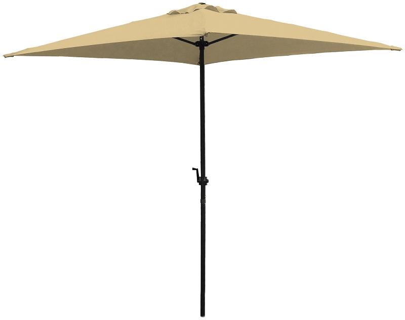 Seasonal Trends Umbrella, Square Canopy, 6.5 ft W Canopy, 6.5 ft L Canopy, 4 Ribs, Polyester Fabric, Taupe Fabric, Steel Frame, Black Frame, Manual Handle Opening Mechanism, 7.8 ft Pole Height, 6.5 ft Length, 6.5 ft Width, 7.8 ft Height, Resists: Fade, Rust, Suitable for: Outdoor Use