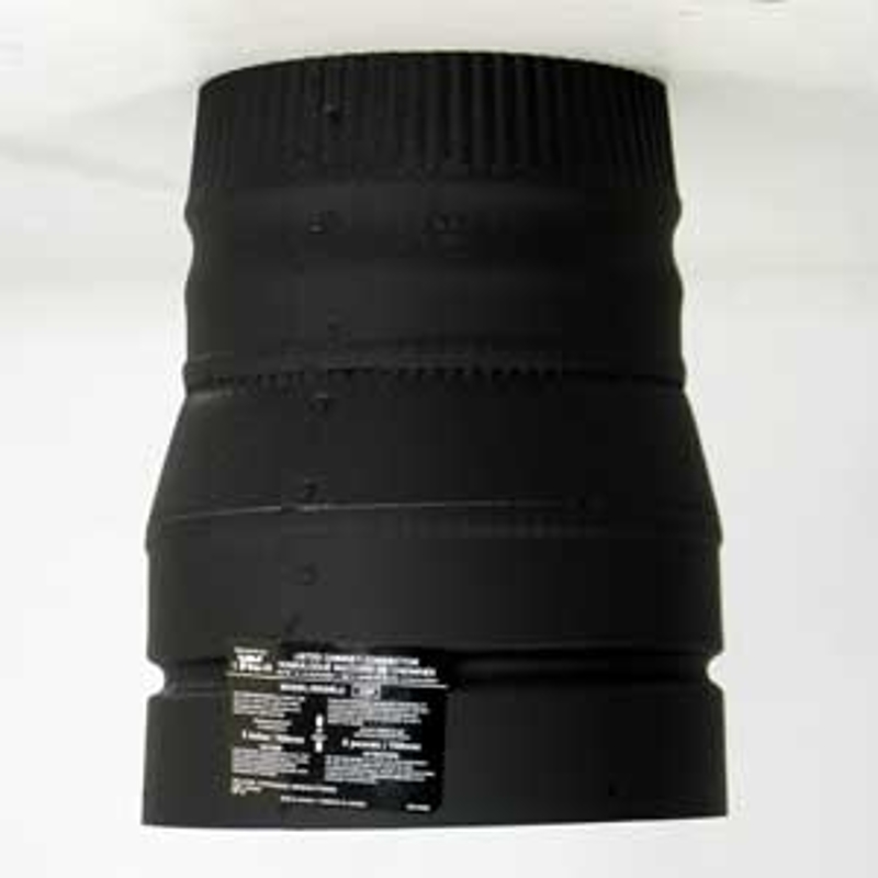 Selkirk Stove Pipe Reducer, Nominal Size: 7 to 6 in, Temperature Rating: 1200 deg F, Aluminized Steel/Stainless Steel, Enamel, Black, 9-5/8 in L