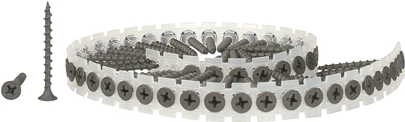 50 screws per flat strip. Gray phosphate finish. For drywall to wood. Compatible with DS235AC (264.0712), DS232AC (264.0670), DS215-18V (264.0654), DS212-18V (264.0662).