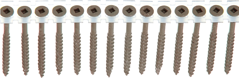 50 screws per flat strip. 16 strips per pail. 800 total screws per pail. Thread coarse 2/3 with wax. Fits DS425AC (557.4827), DS440AC (557.4876), DS312-18V (305.6512) tools.