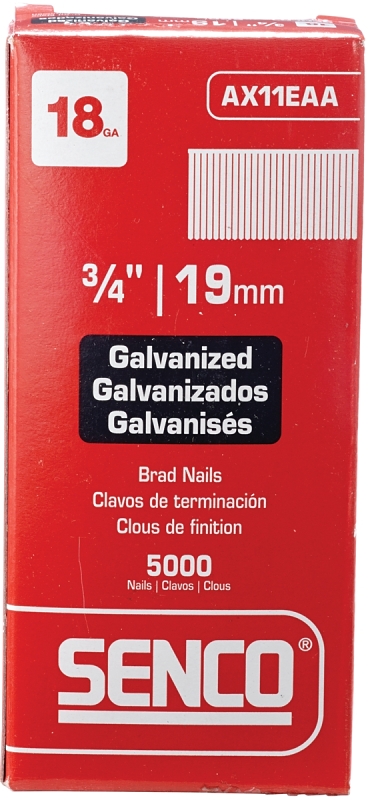 SENCO AX11EAA Nail, 3/4 in L, 18 Gauge, Steel, Electro-Galvanized, Brad, Medium Head, Smooth Shank