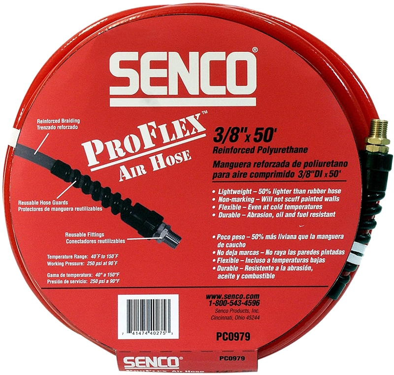 SENCO PC0979 Air Hose, 3/8 in OD, 50 ft L, MPT, 250 psi Pressure, Polyurethane