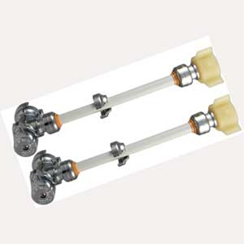 SharkBite Faucet Kit, Specifications: 200 psi Pressure, 200 deg F Temperature, Metal, Chrome Plated, Suitable for: Copper, CPVC and PEX Pipes, Includes: (2) Coils of PEX, (2) Connectors, (2) Stop Valves