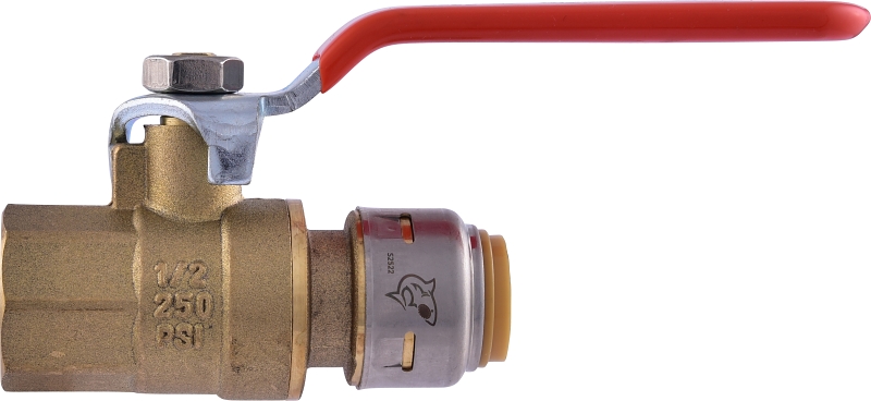 SharkBite Max ball valves with FNPT connectors have an innovative push-to-connect design that makes for quick and easy installations and allows for transition from a FNPT threaded end to a PEX, copper, CPVC, PE-RT or SDR-9 HDPE pipe, without a need for soldering, clamps, glue or unions. They can even be rotated after install for easier installation in tight spaces.