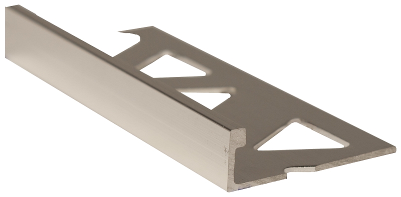 Flat tile edge for use with tile. Prepunched for easy setting into adhesive. Protects tile from damage while providing a finished butting edge for other flooring materials.