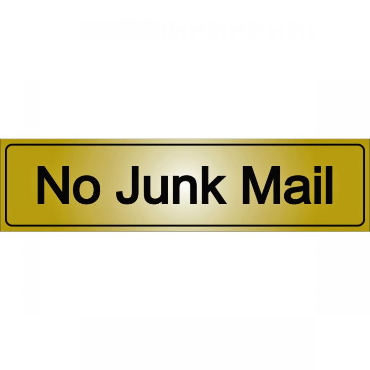 Richelieu 1150839 8" x 2" "NO JUNK MAIL" Sign