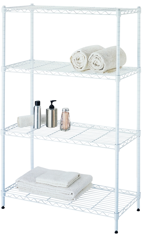 Simple Spaces 4-Tier Shelf Stacker, 4-Tier Shelving Levels, Each Shelf: 132 lb Weight, Tube Thickness: 1.0 mm Thickness, 31 in Width, 48-1/4 in Height, Steel, White, Includes: Instruction Sheet