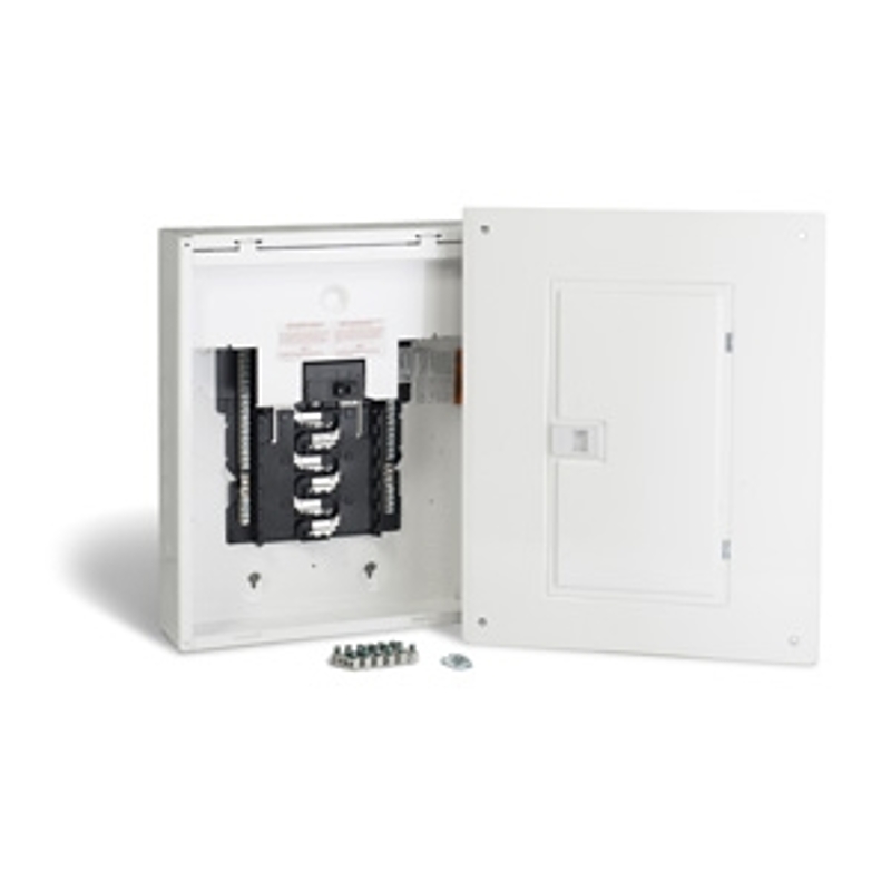 Square D Homeline Load Center, 120/240 VAC, 60 A, 1 ph, 12 Spaces, 24 Circuits, Tandem Breaker/Load Center, 22 kA Interrupt, #6 to 2/0 AWG Cable, 3-Wire Wiring Configuration, Bus Bar Material: Aluminum, Cover/Lid Type: Flush, NEMA 1 Enclosure, Wall Mounting, Steel, White, Includes: Grounding Bar