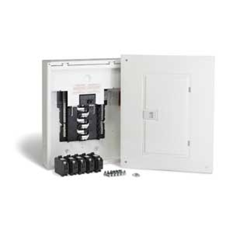 Square D Homeline Load Center, 120/240 V, 100 A, 1 ph, 8 Spaces, 1 Pole, 8 Circuits, 10 kA Interrupt, #8 to 1 AWG Cable, 3-Wire Wiring Configuration, Bus Bar Material: Aluminum, Cover/Lid Type: Surface, Surface Mounting, Steel