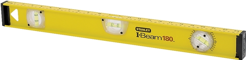 Rigid I-beam cross-section features low-profile, shock-absorbing end caps for durability, 180 deg rotating view for a range of situations. Powder-coated frame withstands nicks and offers a comfortable hold. Measuring scale printed directly on the level eases layout work. Clear-acrylic vial covers for easy readability.