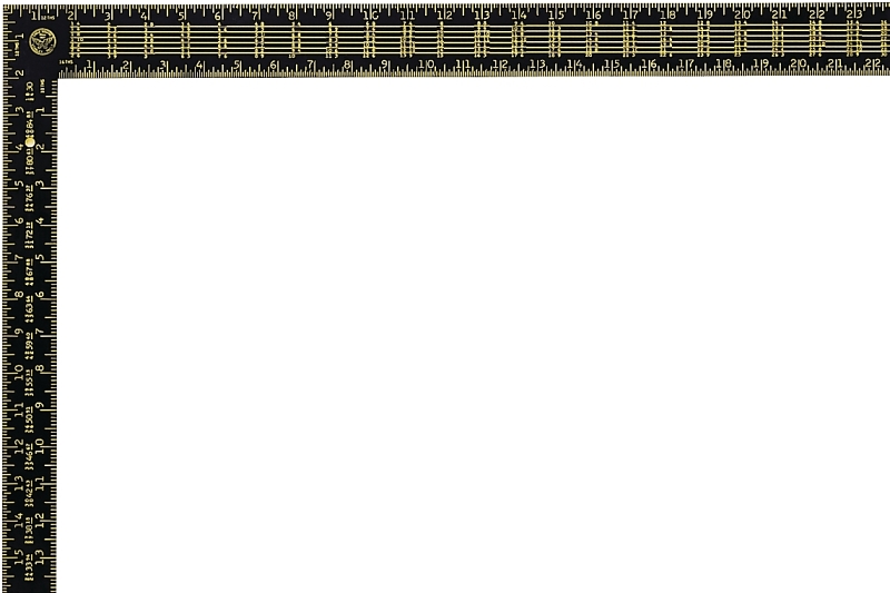 Extra thick aircraft-grade aluminum maximizes durability and maintains accurate square. Black finish is treated to resist corrosion. Embossed graduations are painted yellow for readability in all light conditions. Markings include brace measures, octagon scale, board measures and rafter table. Graduation (back) 1/16 in, 1/10 in, 1/12 in, (face) 1/16 in, 1/8 in.