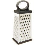 The Starfrit four sided box grater has a coarse and fine grating blade, a parmesan blade and a slicing blade. With its non-slip base you will be more stable when using the grater.