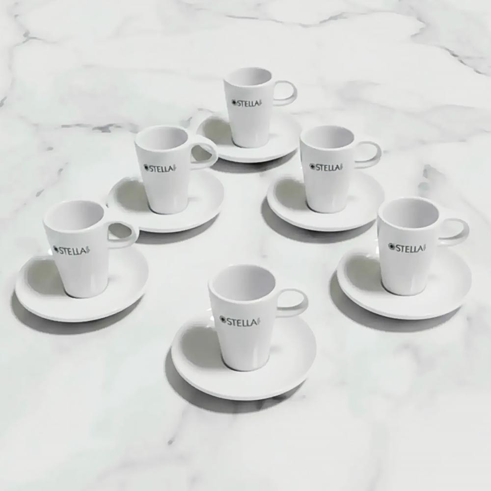 • Stella Espresso Cup Set includes: 6 cups with rounded handles and 6 matching saucers