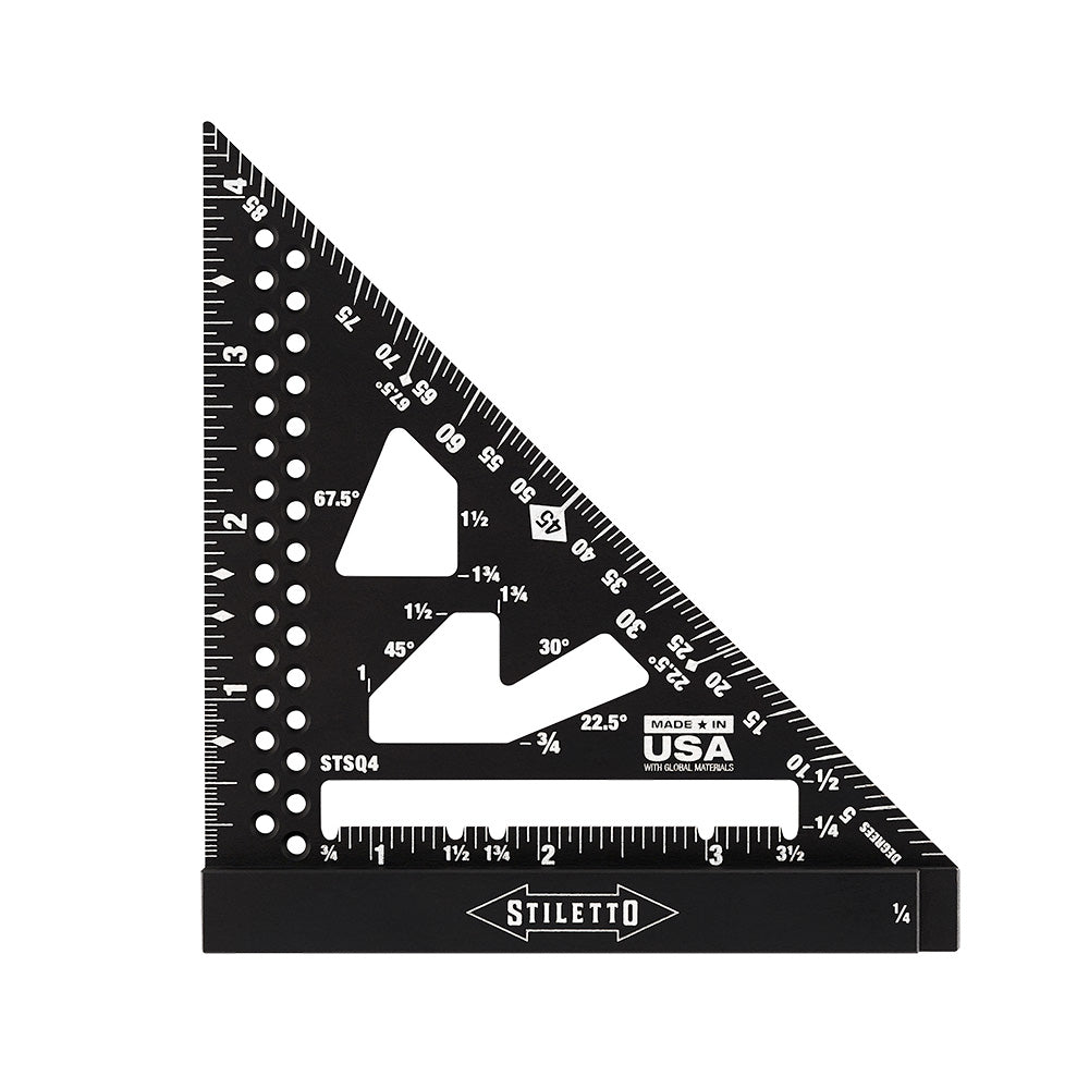 The STILETTO® 4-1/2” Trim Square is designed for precision and efficiency ideal for finish carpentry. Additional scribe holes aid in laying out common angles ripping boards and setting saw blade height. The 1/4” and 3/16” revel gauge help quick set door casings while the bottom heel ruler provides marking versatility. The 4-1/2” Trim Square is fully machined with an anti-glare finish and the most durable coating.