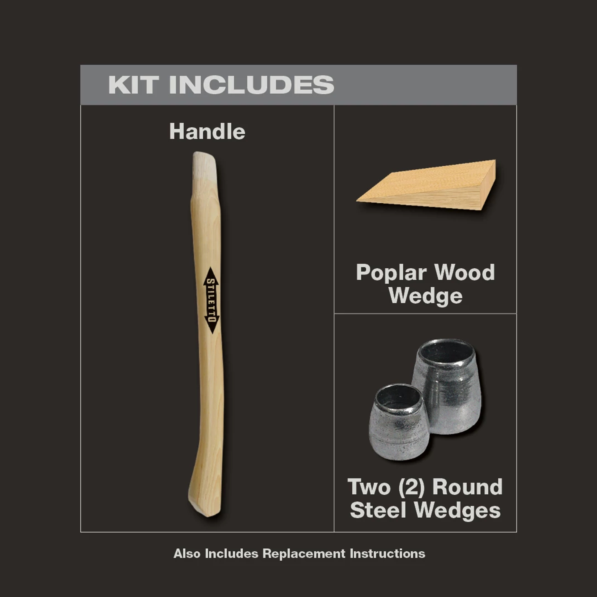 The Stiletto STLHDL-C is an 18 in. curved hickory replacement hammer handle . The replacement hammer handle has a round steel sure hold wedge to ensure long lasting handle set. American hickory handles naturally dispel recoil shock and vibration. The STLHDL-C has been precision turned and gauged for perfect fit every time and provides traditional feel of hickory in your hand.