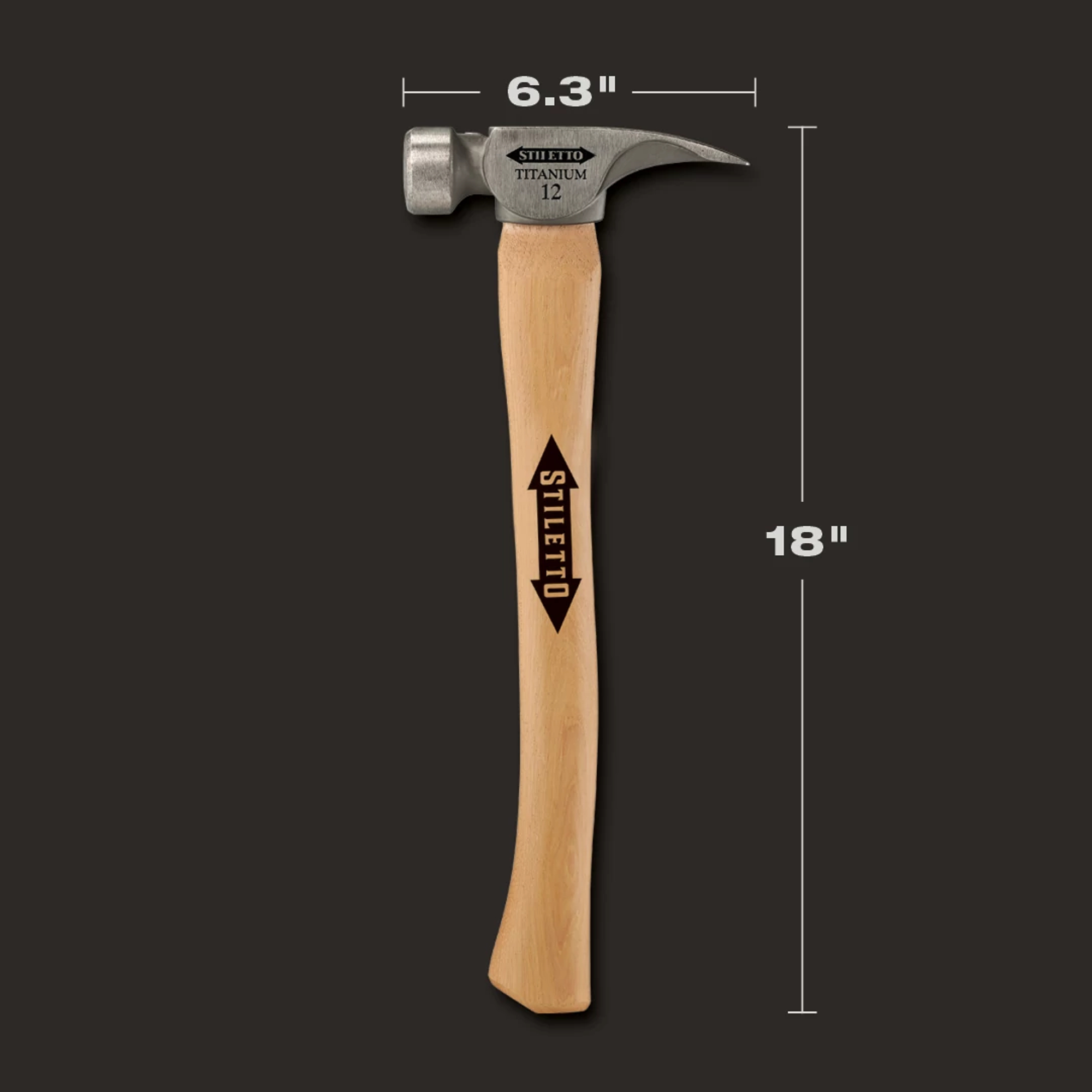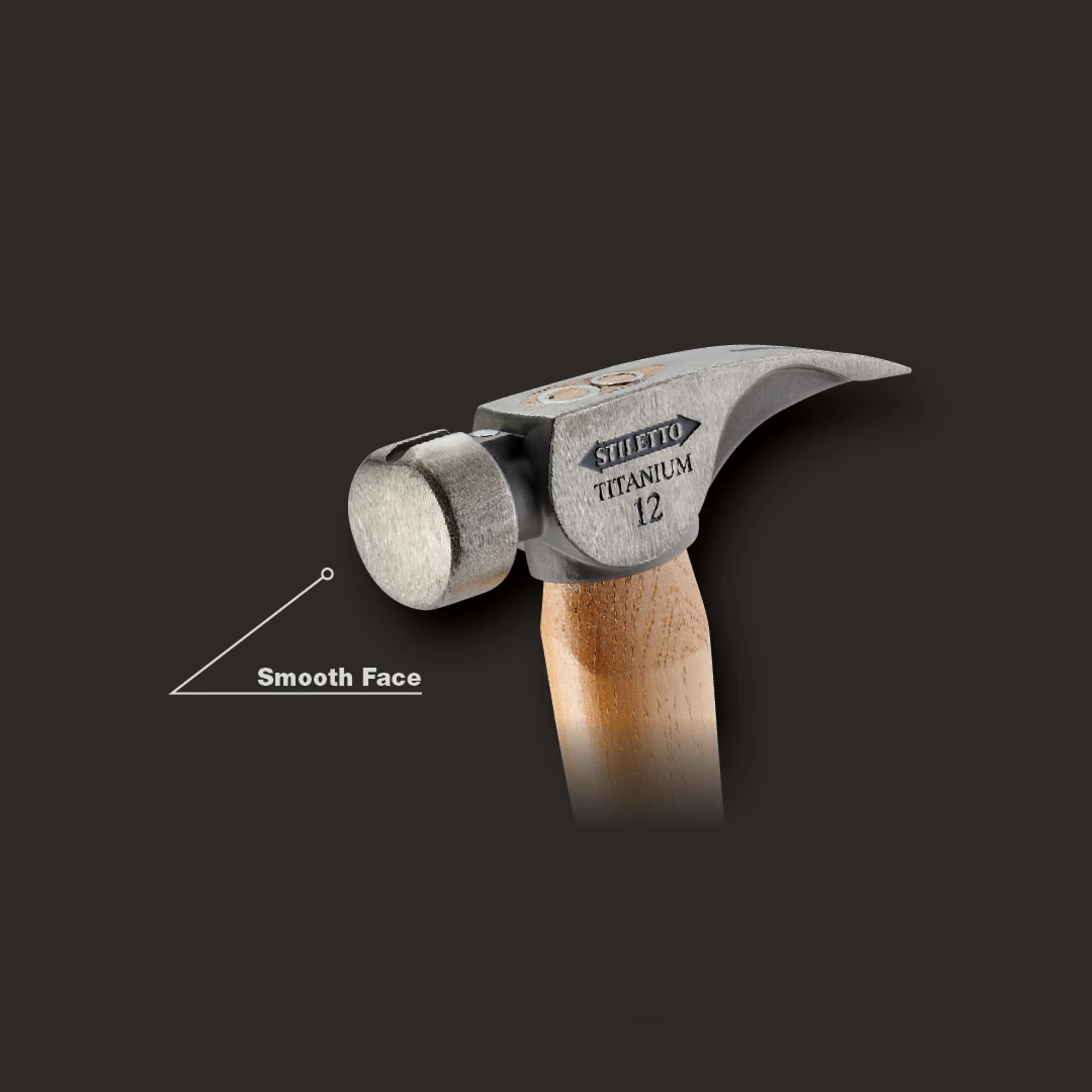 Best remodeling and light framing weight in our solid titanium heads, the Stiletto TI12SC is a 12 oz titanium smooth face hammer with an 18 in. curved hickory handle. The hammer has a straight claw design and Stiletto’s signature magnetic nail starter. The TI12SC has the comparable striking force of a 21 oz steel hammer and is recommended for decking siding, fencing & exterior trim. Stiletto Tool company has been synonymous with high quality hand tools dating back to 1849. With our long history and strong reputation, the brand has evolved into the modern day standard for innovative, lightweight, ergonomic, productive, and professional tools. We set the standard with our line of premium titanium hand tools that span numerous trades such as framing, remodeling, finish work, siding, demolition, concrete, and drywall. Titanium is 45% lighter weight while providing the same striking force and strength as steel. Titanium tools also produce 10 times less recoil shock which helps reduce carpal tunnel syndrome. The combination of these features means less down time, more productivity, and most importantly less pain while working.