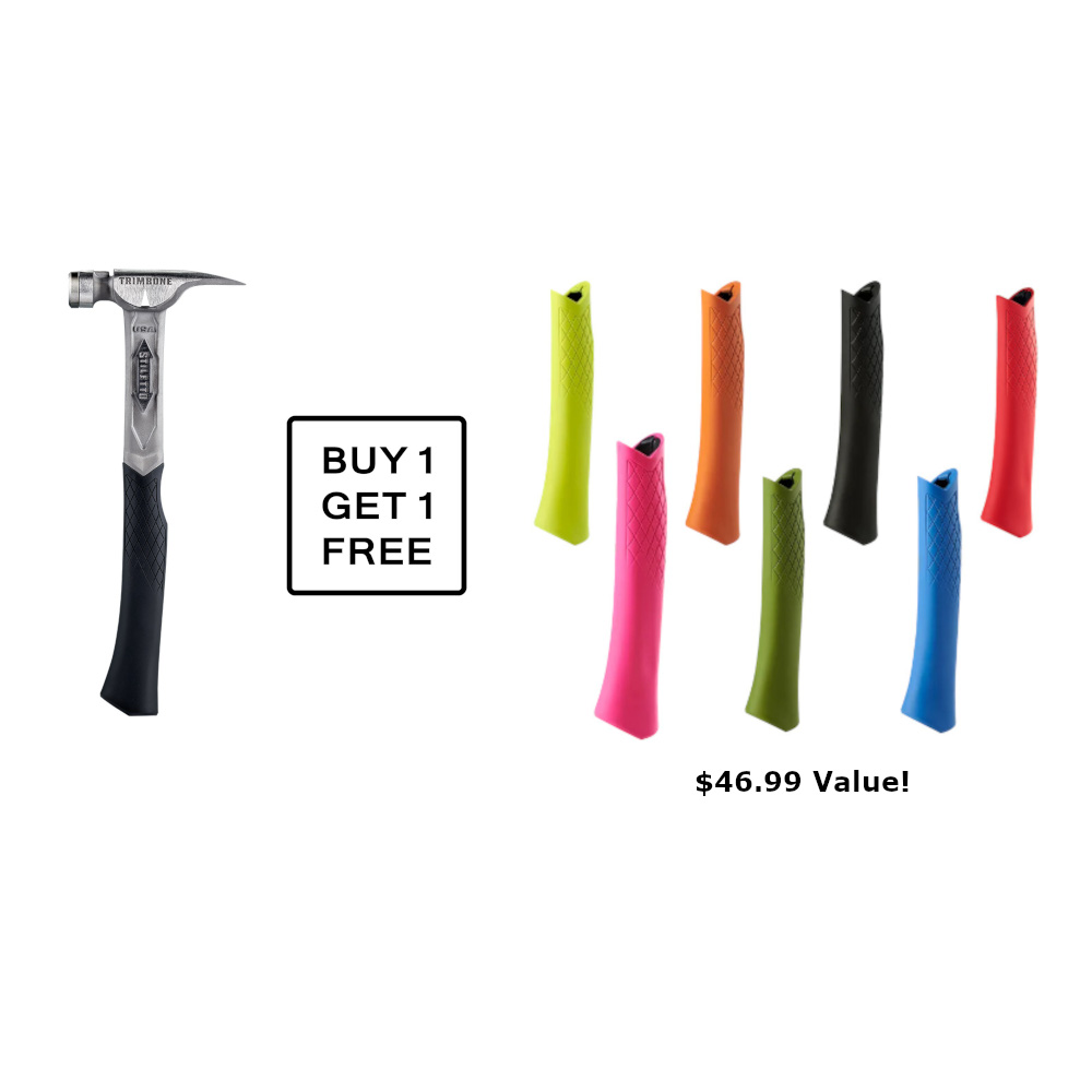 The STILETTO 10oz TRIMBONE Hammer with Smooth Steel Face and Curved Handle is designed for finish with specialized features. This titanium hammer is 45% less weight and hits like steel. The compact D-Face and Trim Claw are ideal for tight spaces. The TRIMBONE also features a steel face and a replaceable colored grip, available in 6 colors, extending the life of the hammer and providing a personal touch. The 180° side nail puller is ideal for 2D-10D nails but has the power to pull up to 16D.