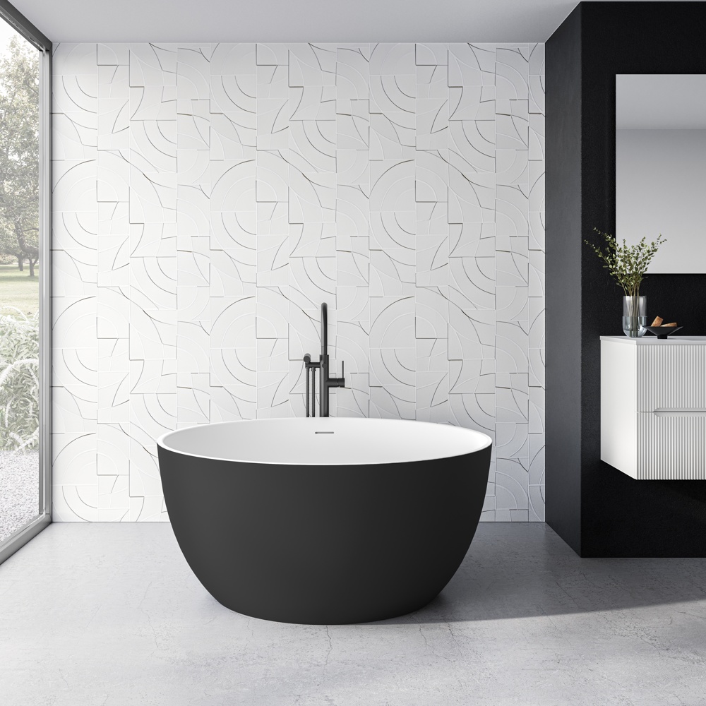 Stonetouch STBT47000WHBKMT Centerpiece Free Standing Bathtub – White Matte/Black Matte