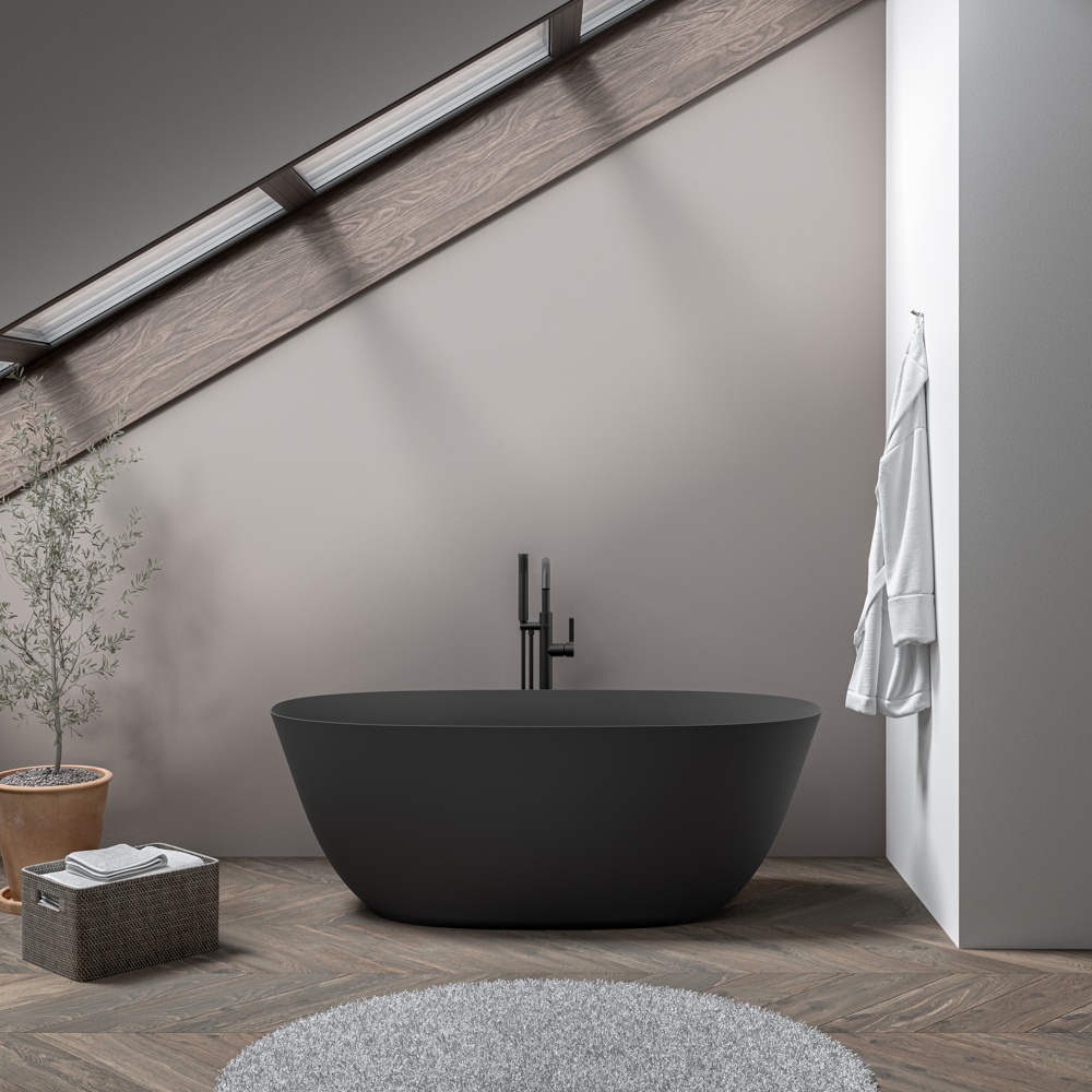 Stonetouch STBT63000BKBKMT Portofino Free Standing Bathtub – Black Matte /Black Matte