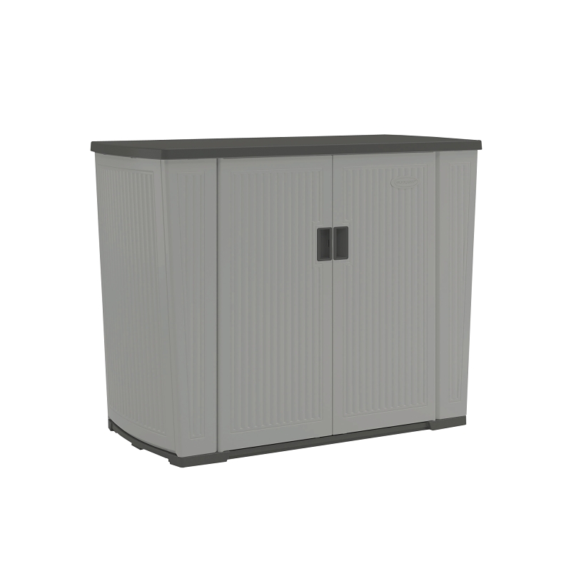 Add sophisticated style and storage to your deck or patio with this SuncastĀ® Backyard OasisĀ® basic unit. Offering a 130 gal interior capacity, providing easy storage for outdoor kitchenware, grilling utensils, patio cushions, throws and pillows. This unit includes a cut out for electrical cords, that can be closed when not in use and also includes a metal reinforced, adjustable shelf that further increases your organizational opportunities. Durable resin construction is accented by sturdy, pad-lockable doors that provide great strength and security (lock not included). Plus, the modern stylish reeded design helps accent your outdoor environment. Increase your storage capacity while beautifying your space with this SuncastĀ® Backyard OasisĀ® basic unit.
