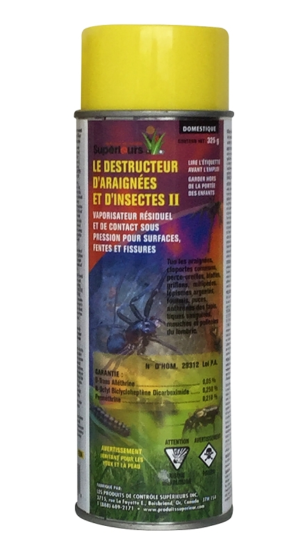 Superior Spider and Insect Destroyer, 325 g Net Content, Liquefied Gas Form, Compositions: D-Trans Allethrin, N-Octyl bicycloheptene dicarboximide, Permethrin, Spray Application Method