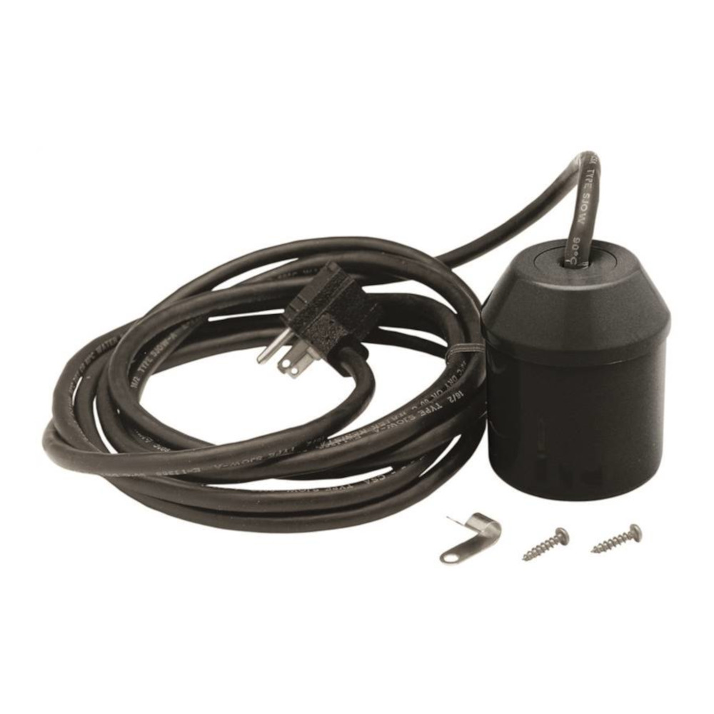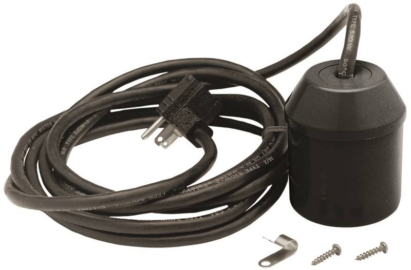 Replaces most standard float switches. Ideal for 14 in Dia or larger sump basins. Piggy-back style plug with 10 ft cord. Mounting strap included.