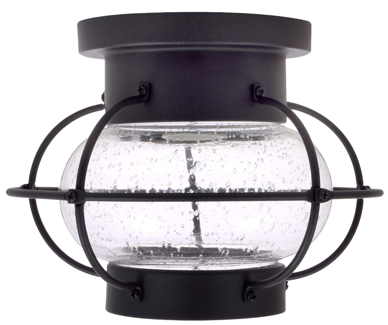 Sylvania Ceiling Light Fixture, 120 V, Number of Lamps: 1, Lamp Type: LED, Lamp Base: E26, Bulb Shape: A19, Average Life: 15,000 hr, Color Temperature: 2700 K, Lumens: 800 Lumens, Shade Type: Cage, Shade Material: Glass, Shade Color: Clear, Fixture Material: Metal, Fixture Color: Black, Fixture Finish: Matte, Dimensions: 7.99 in Dia, Semi-Flush Mounting, Includes: (1) LED Lamp