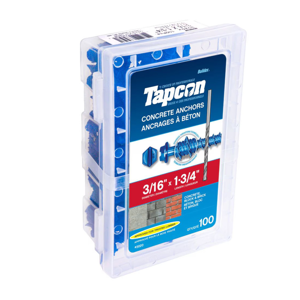 Tapcon 3020 1-3/4" x 3/16" Concrete Screw Anchor, 100 Pack – Blue