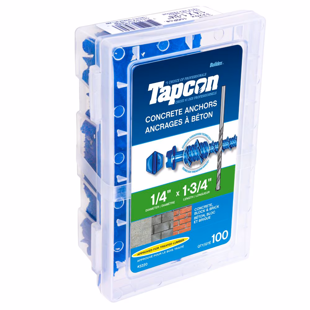 Tapcon 3220 1-3/4" x 1/4" Concrete Screw Anchor, 100 Pack – Blue