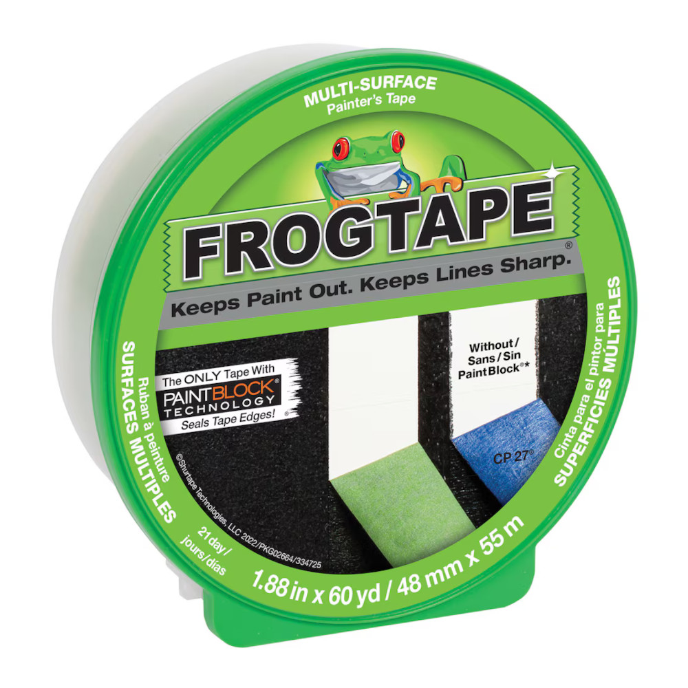 FrogTape® Multi-surface is a premium, medium adhesion painter’s masking tape that helps you achieve crisp, clean paint lines and saves time and money by eliminating the need for touchups.