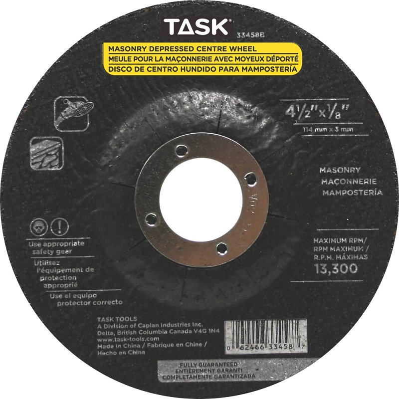 Task Cut-Off Wheel, Arbor Size: 7/8 in, 13,300 rpm, 4-1/2 in Dia, 1/8 in Thick, Applicable Materials: Concrete, Iron, Masonry