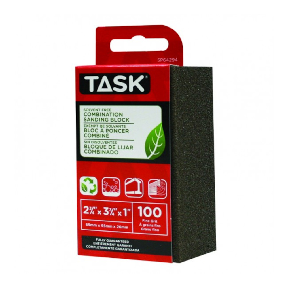 Task Eco Sanding Block, 100 Grit, Grit Grade: Fine, 3-3/4 in L, 2-3/4 in W