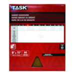 Task Sandpaper, 11 in L, 9 in W, 60 Grit, Grit Grade: Medium, Garnet Abrasive, Applicable Materials: Wood